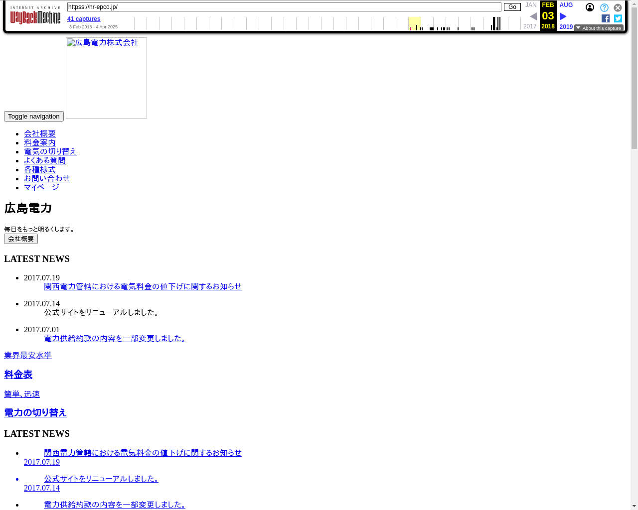 広島電力/電力供給会社/お申し込み/料金案内 |