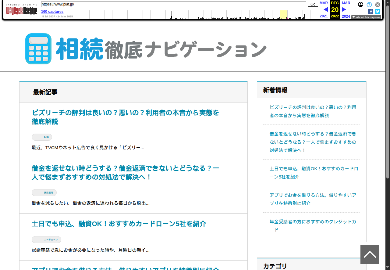 過去サイトのカテゴリ